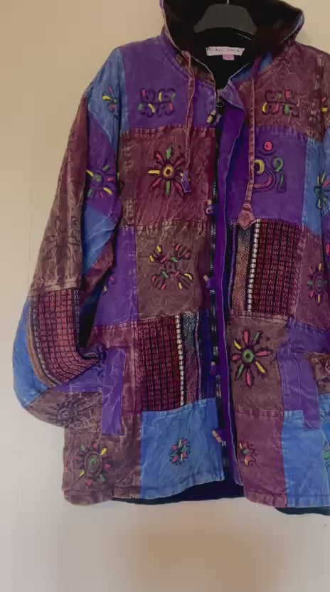 Handmade Patchwork Cotton Hoodie Jacket – Fleece Lined | Made in Nepal